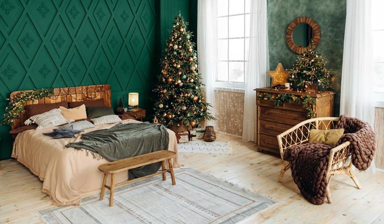 Be color confident and opt for a dramatic and dark style. The cool, blue undertone of Cute Pixie feels opulent and creates the perfect backdrop for ornaments and decor to stand out.