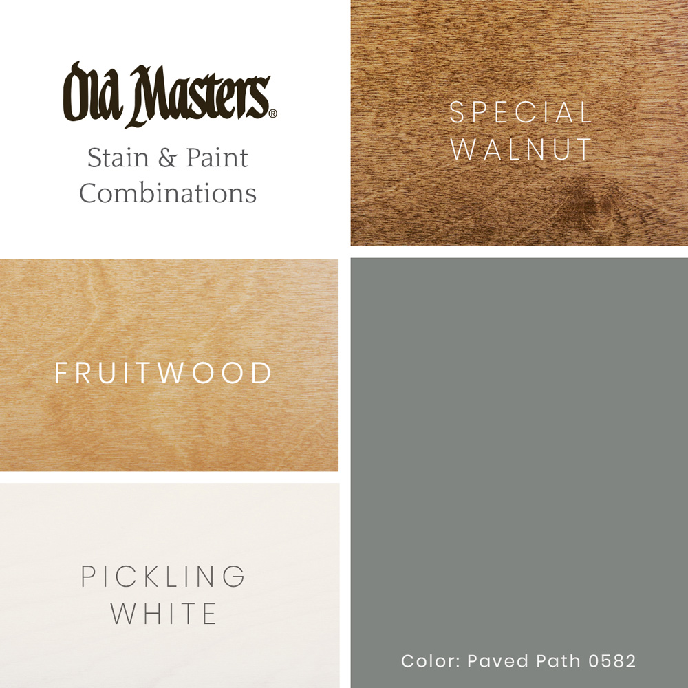 Compliments neutral stain colors like Old Masters Pickling White, Fruitwood, or Special Walnut.