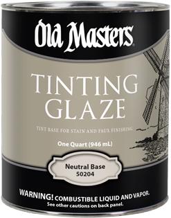 This is a tintable glaze or base for use in creating antique, graining or faux finishes. It can be tinted with any universal colorants or oil-based paint. As a wood stain, Tinting Glaze can be tinted with universal colorants or intermixed with solvent-based stains to create custom colors.